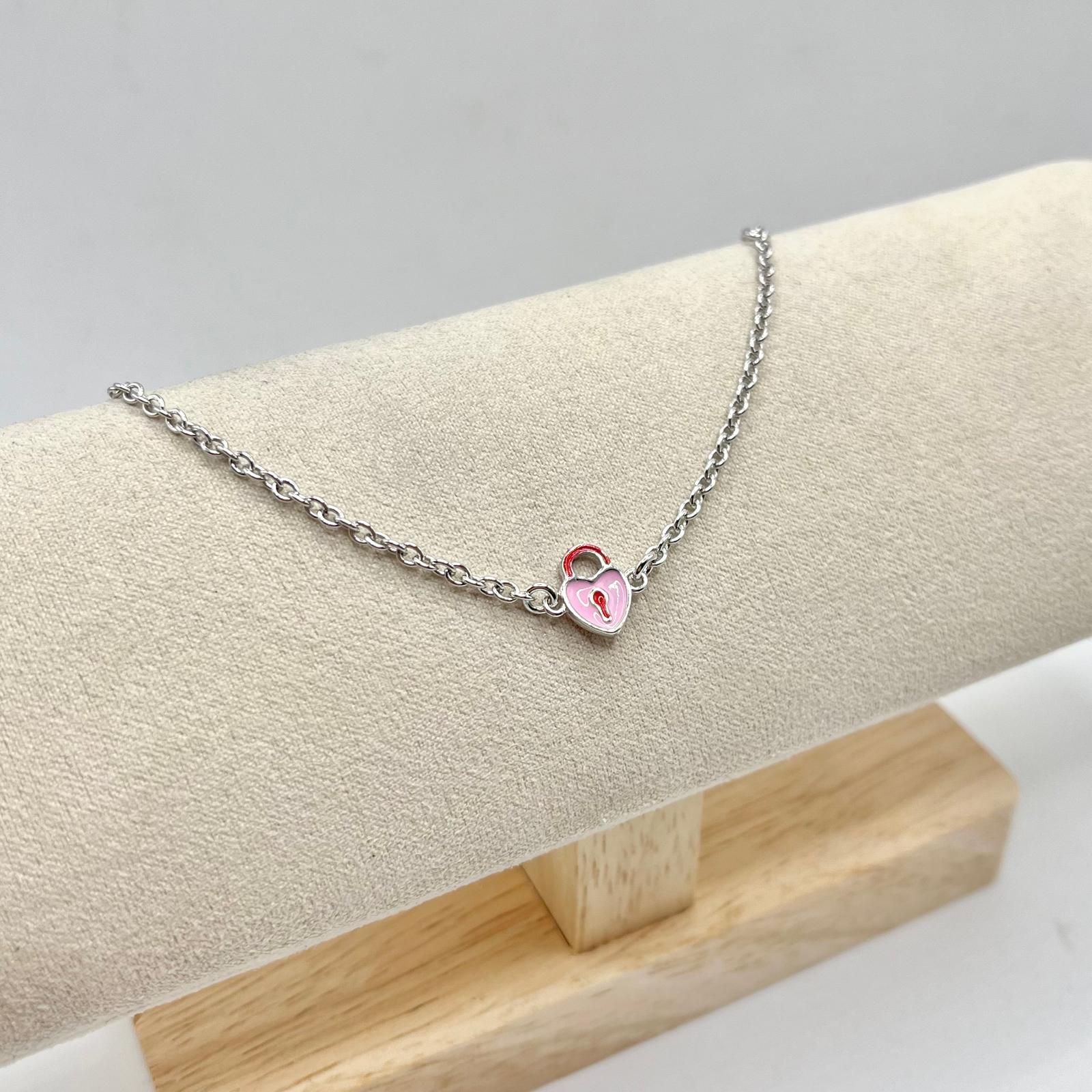 BR LUCCHETTO A CUORE ROSA