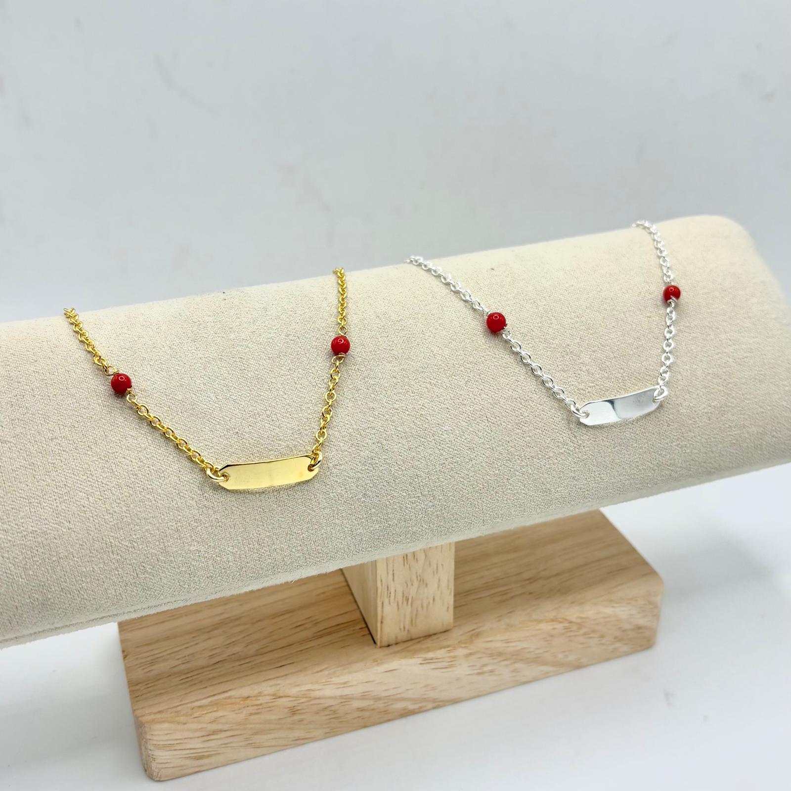 BR DA BATTESIMO TARGA E CORALLO LUNGHEZZA REGOLABILE 12-15 CM
