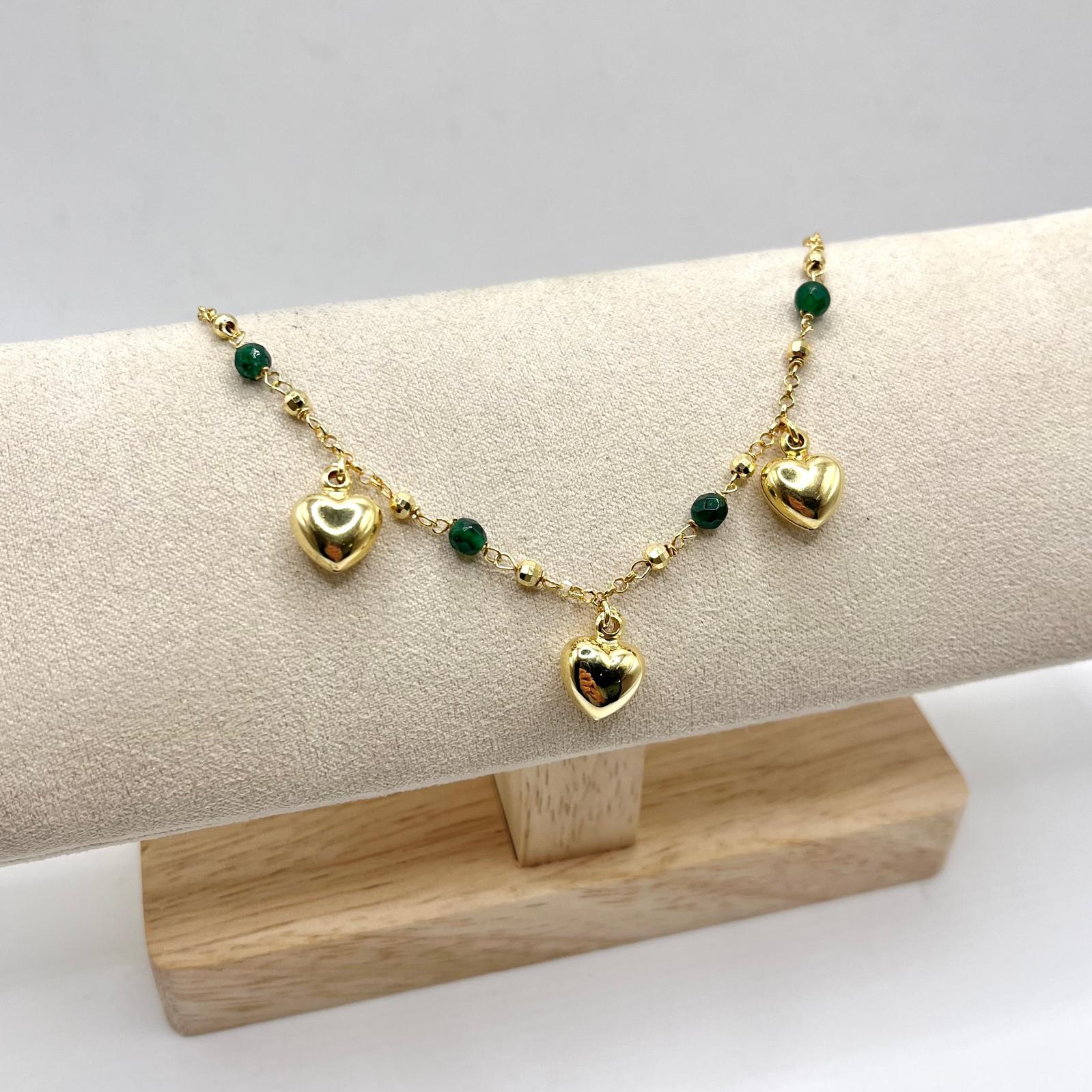 BR PERLINE VERDI E 3 CUORI BOMBATI